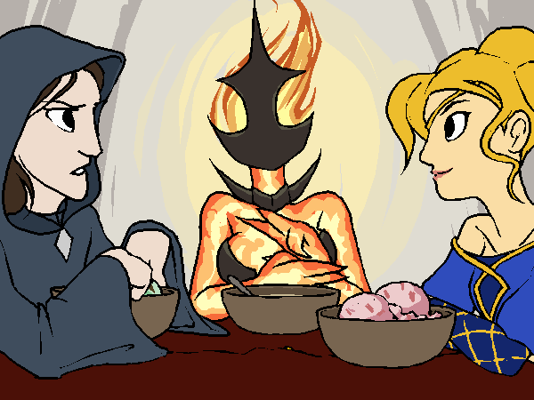 Sigrid clarifies that she wasn’t actually curious, she was just asking to be nice. The response she was looking for was “it went well”. Sorry, you say. She says it’s fine; she’s still re-learning how to get people to respond correctly without mind control. She’ll try to make it clearer next time.